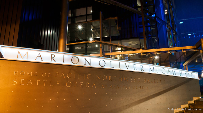 Each year the Ballet and Opera present approximately 150 performances in McCaw Hall. In addition, the Hall hosts two productions of the Seattle Men’s Chorus annually, as well as a wide range of popular music concerts, lectures, corporate meetings, receptions, weddings, festival performances, community, and non-profit events.